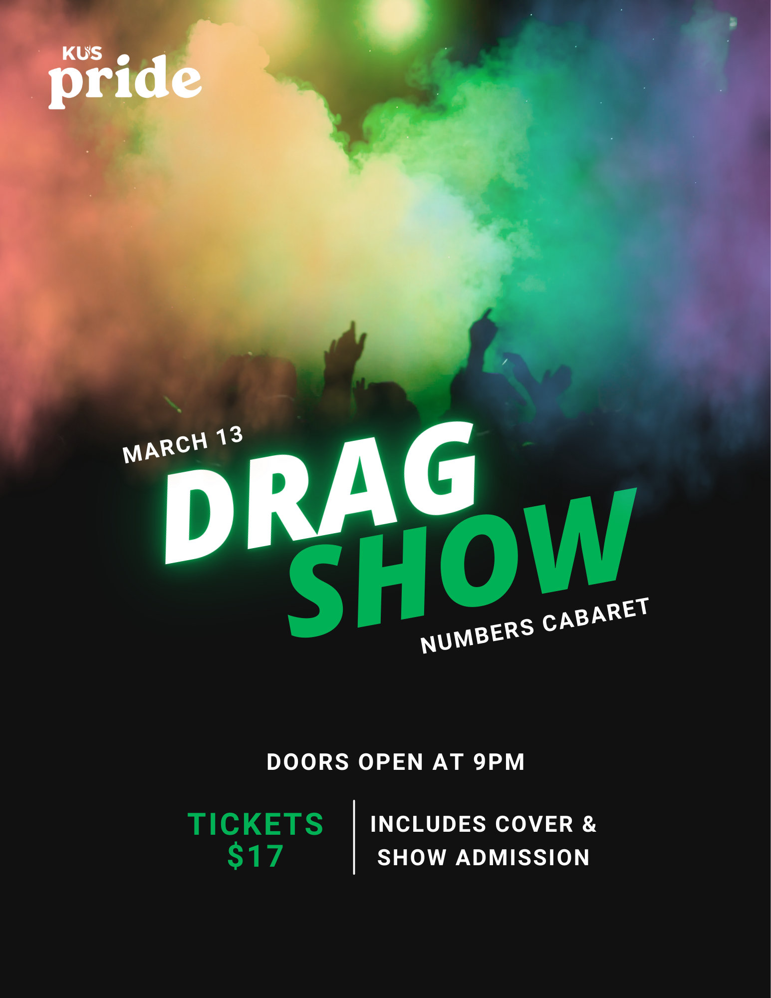 Get ready for an unforgettable evening celebrating drag artistry, community, and queer joy with KUS Pride at Numbers Cabaret for their Friday Night Show! Join us on March 13th at 9pm and bring your friends for a night of performances and dancing.