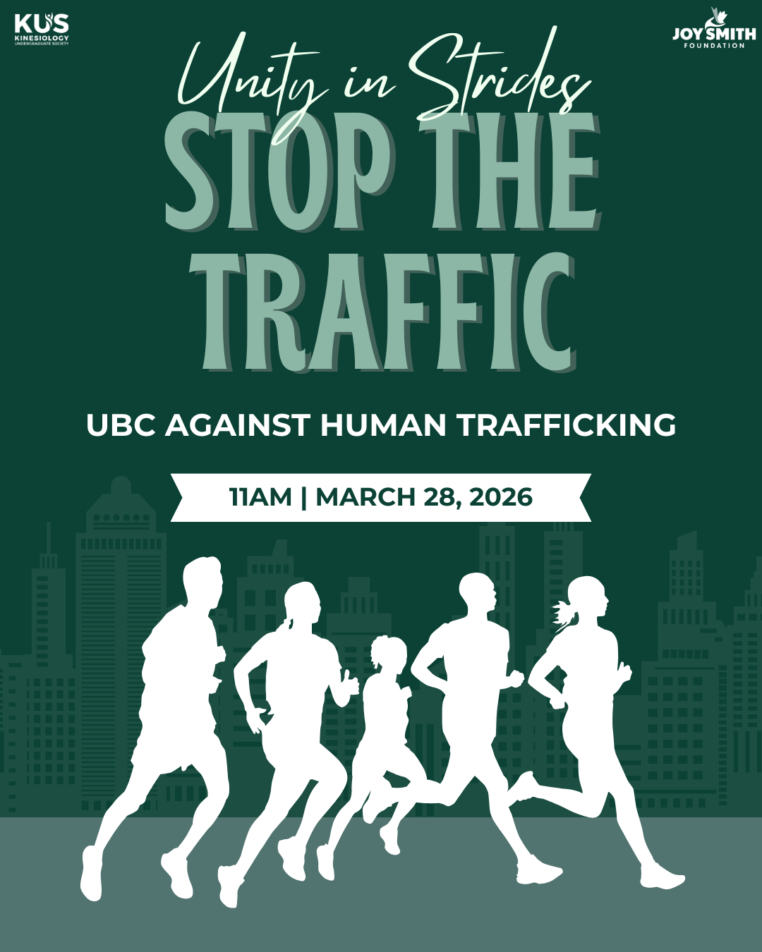Stop the traffic is a student-led initiative ran by @stopthetrafficubc, @kappasigmaubc, @deltagammaubc, @susubc, and @lfsusubc to help raise awareness, spark conversations, and stand together against human trafficking. Grab your friends and your running shoes and join us for a run (or walk) at UBC Main Mall on March 28! 🏃🌳